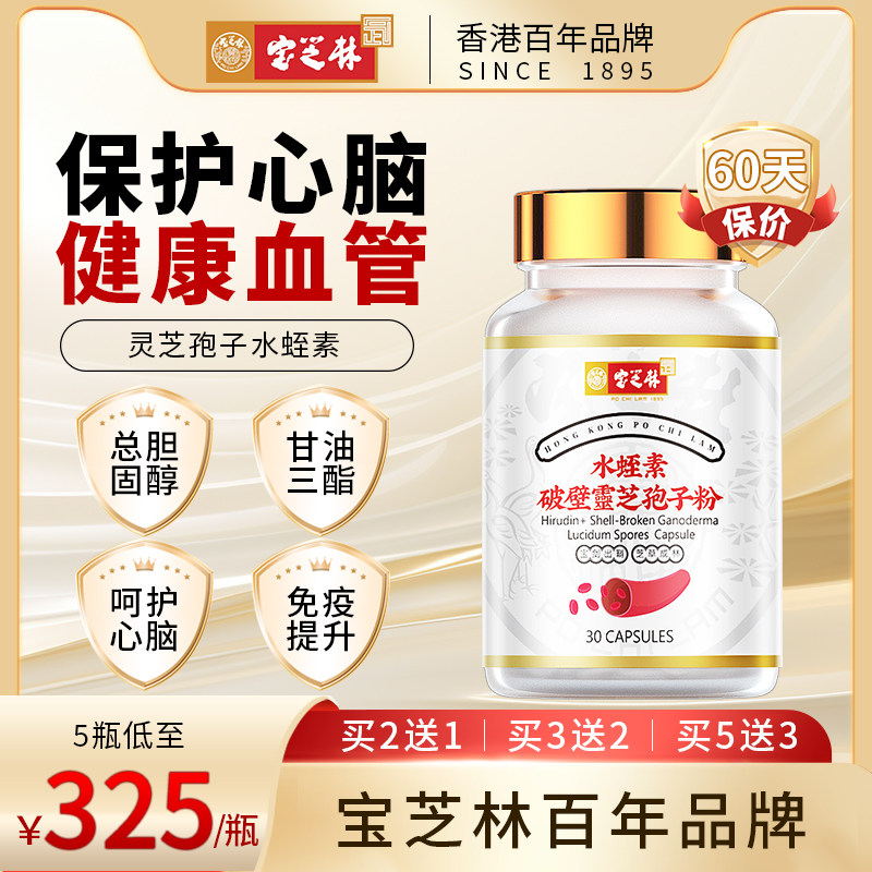 香港宝芝林天然水蛭素灵芝粉胶囊中老年呵护心脑血管进口保健正品