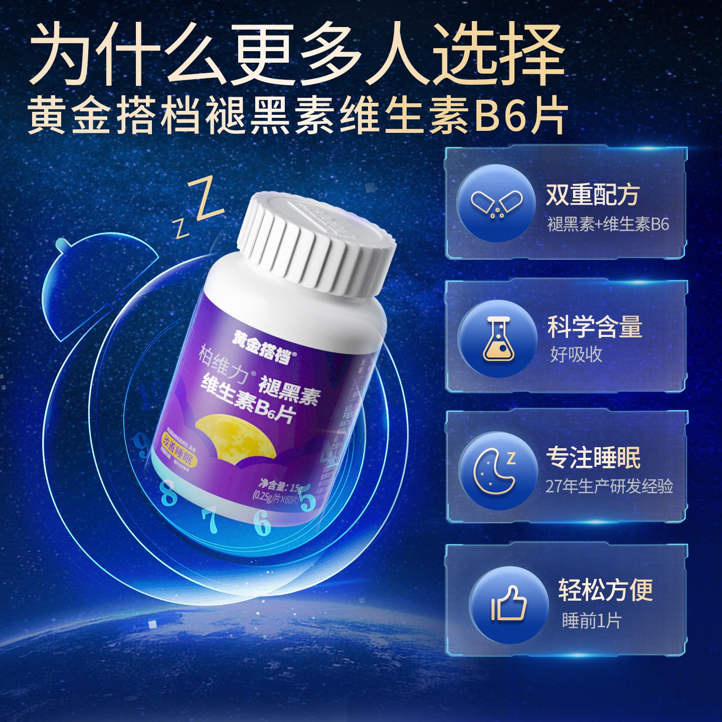 天猫黄金搭档官方旗舰店,黄金搭档褪黑素B6改善睡眠片