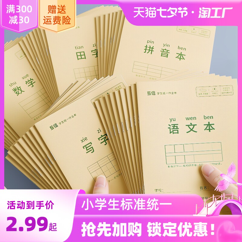 天猫天天特卖工厂店,小学生作业本子田字格本拼音本全国标准统一田字格簿数学生字练习本练字本幼儿园写字一年级田格本三田子初学