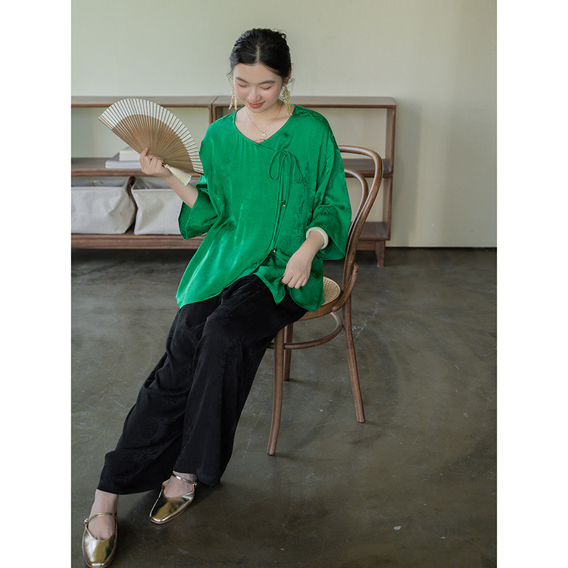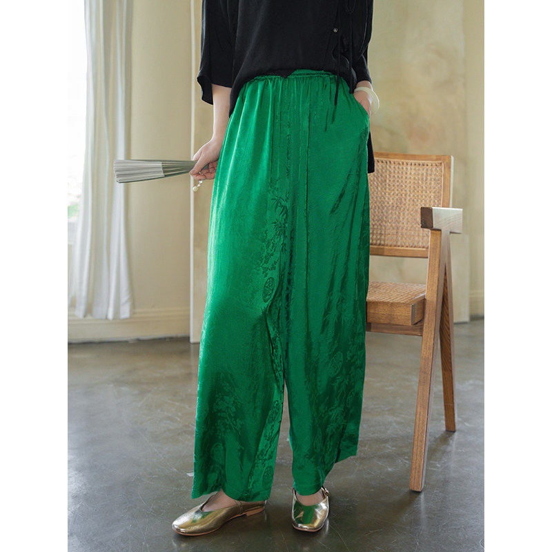 淘宝安妮森林annforest文艺原创大码定制,安妮森林缎面提花松紧腰休闲裤