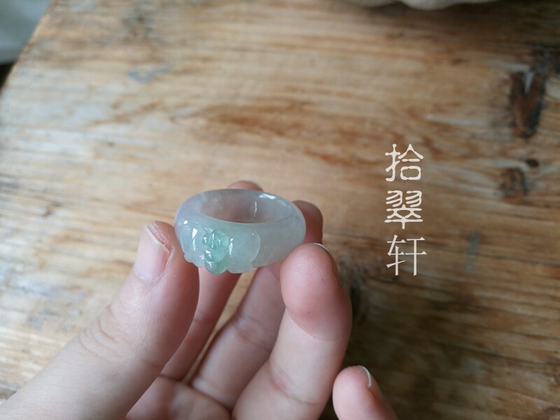 【拾翠轩】冰种翡翠蝴蝶指环 淡绿典雅 有省级珠宝鉴定证书