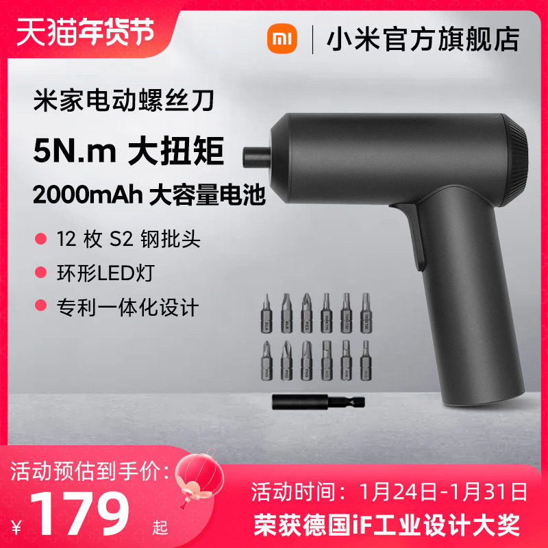 天猫小米官方旗舰店,多功能手持便携螺丝刀小米维修,2000mAh 大容量电池 12 枚 S2 钢批头