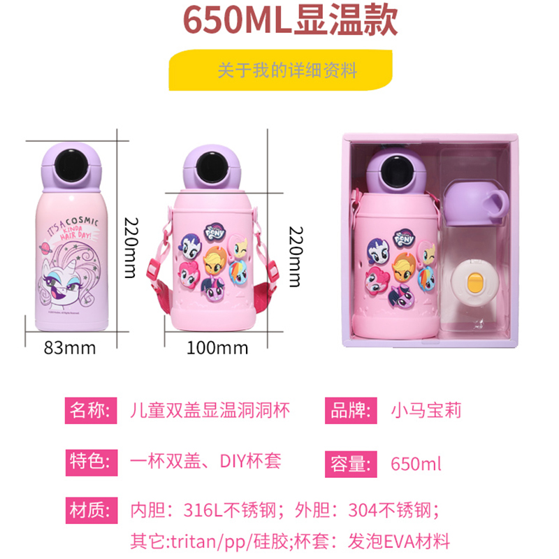 天猫乐炫优品母婴专营店,温显大容量一壶三盖儿童吸管杯,316L内胆 DIY杯套 智能温显