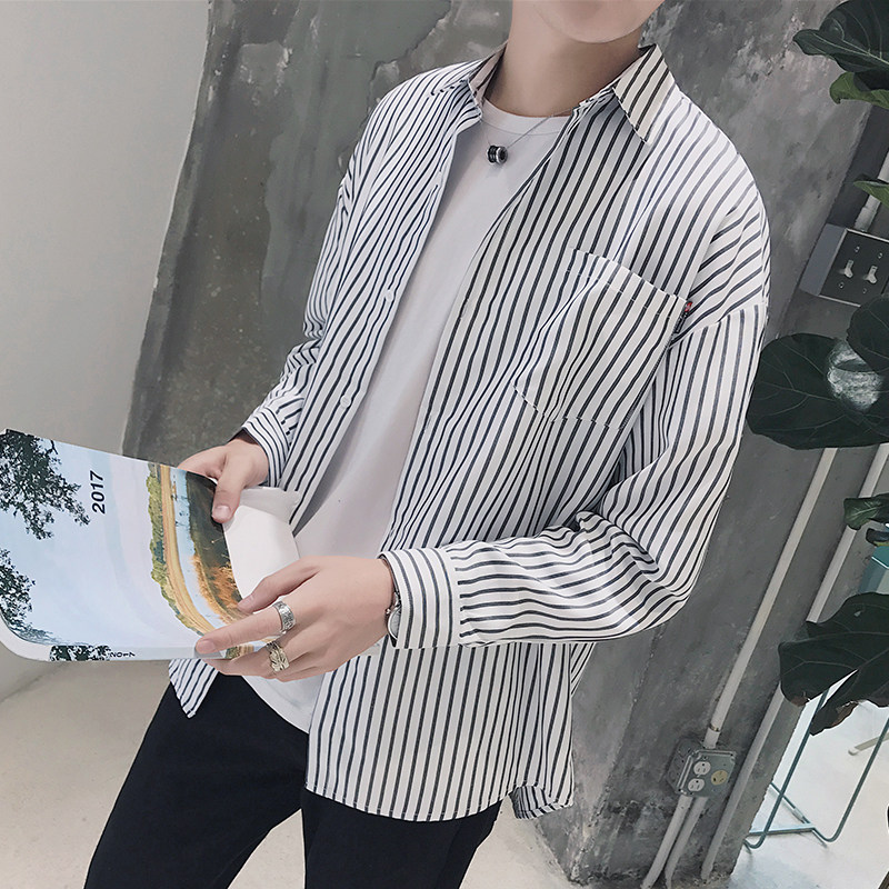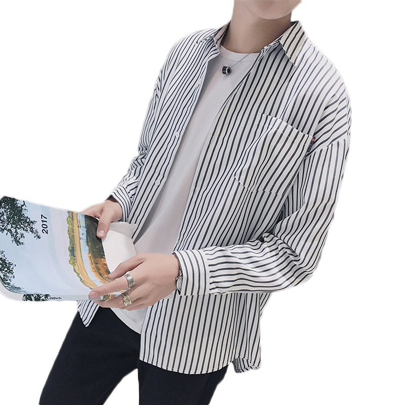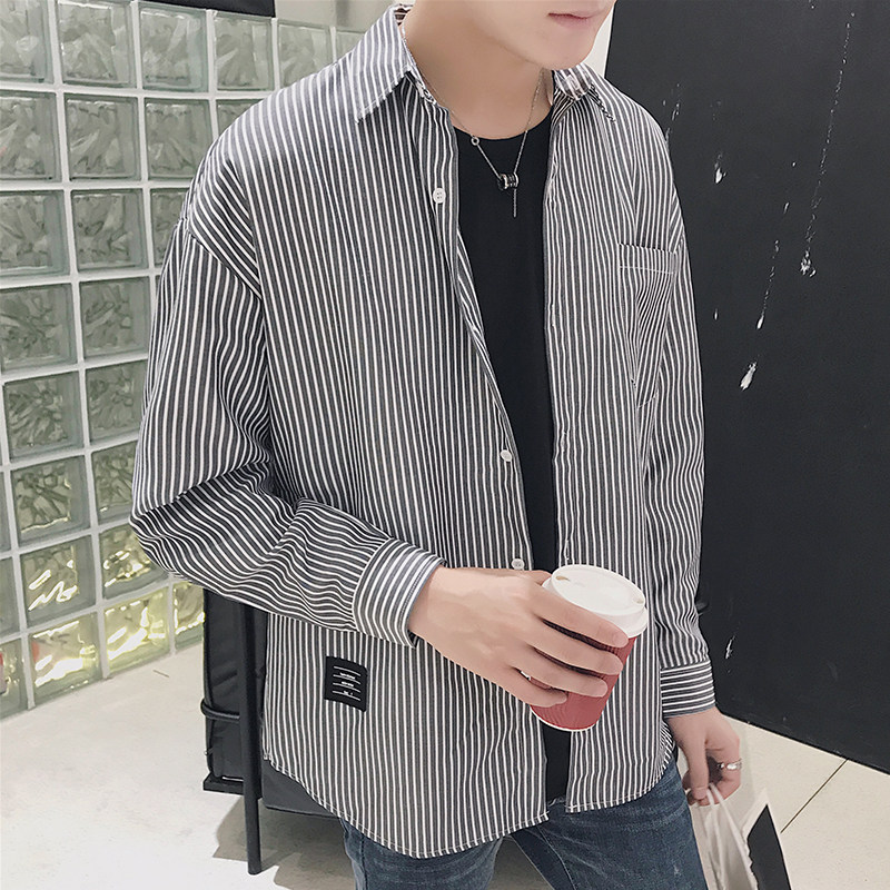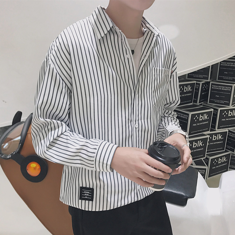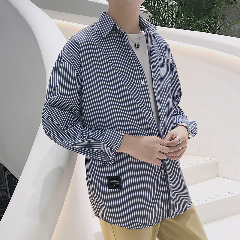 淘宝南国步行街3号店,2022港风春季宽松男装长袖条纹衬衫