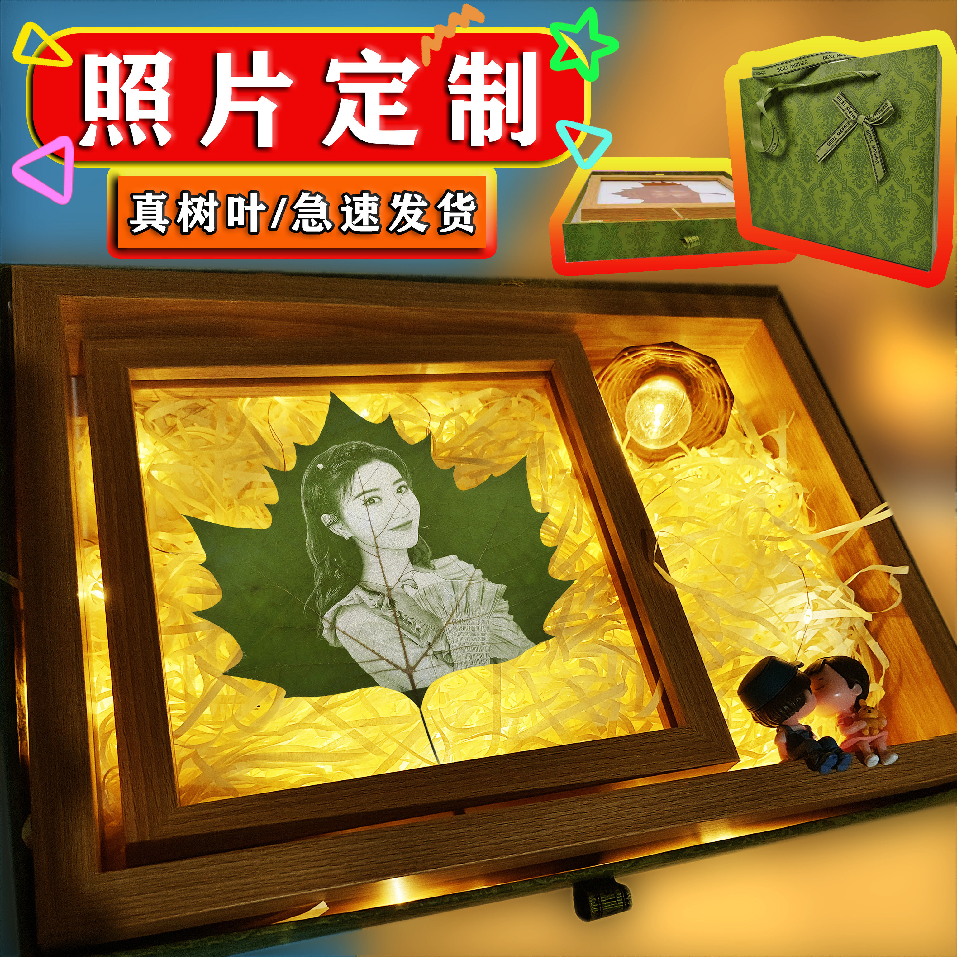 淘宝爱尚叶雕,叶雕定制照片结婚生日纪念日礼物