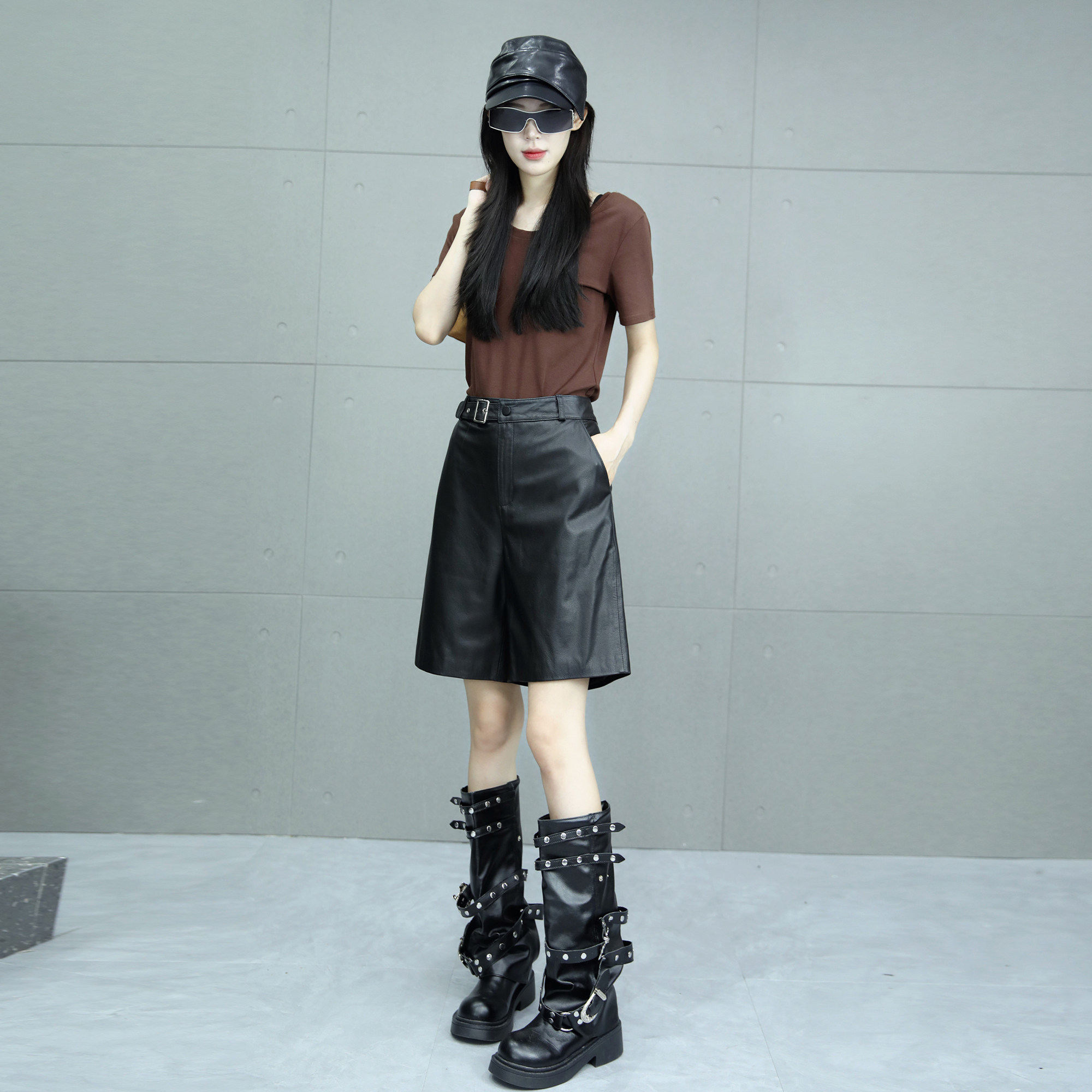 淘宝欧美依派,五分裤女2025年秋季新款牛皮纹