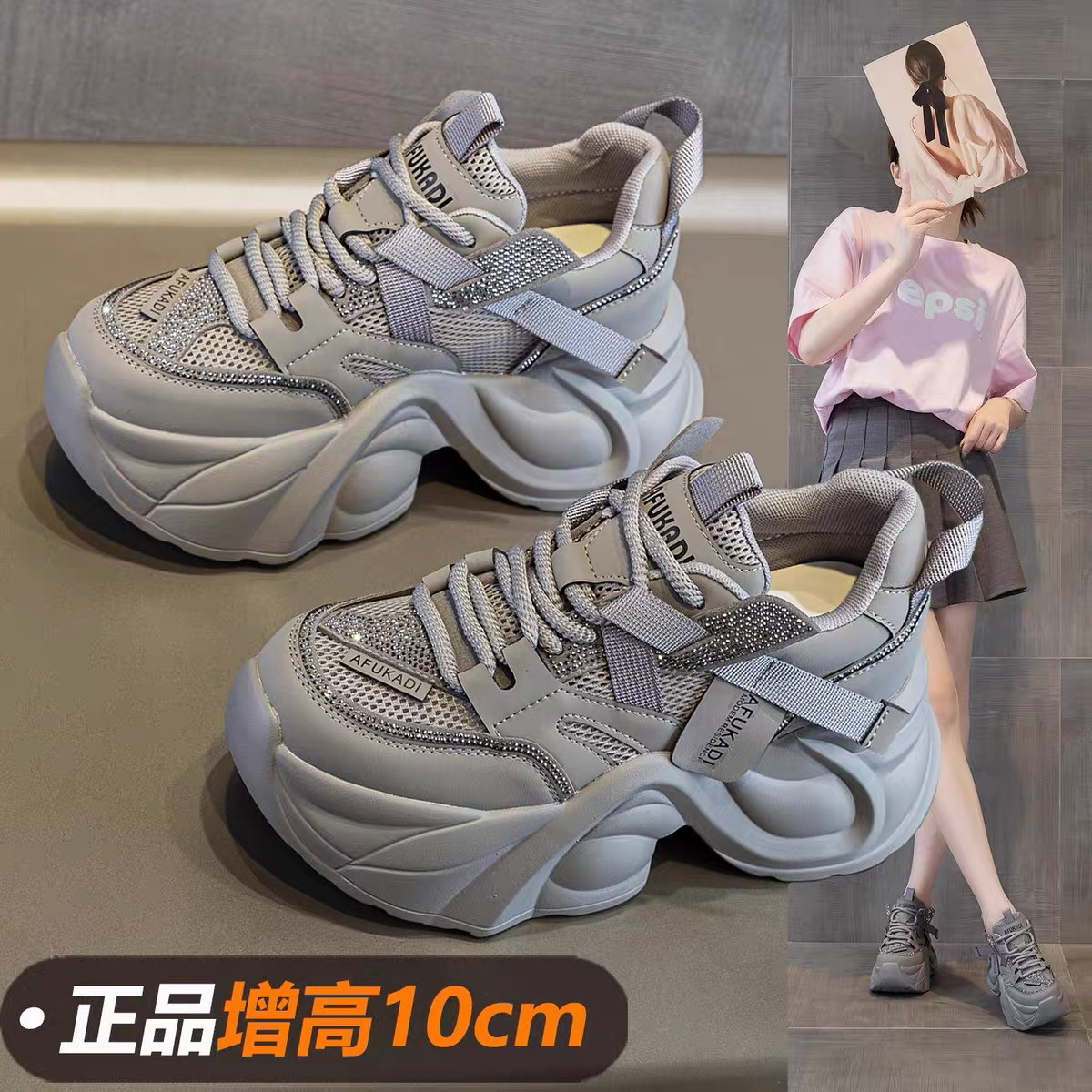 淘宝MOMO自由步履,欧洲站10cm厚底老爹鞋女款2025新款秋冬季爆款内增高运动女鞋轻便