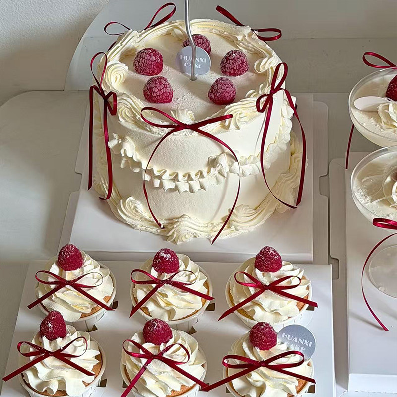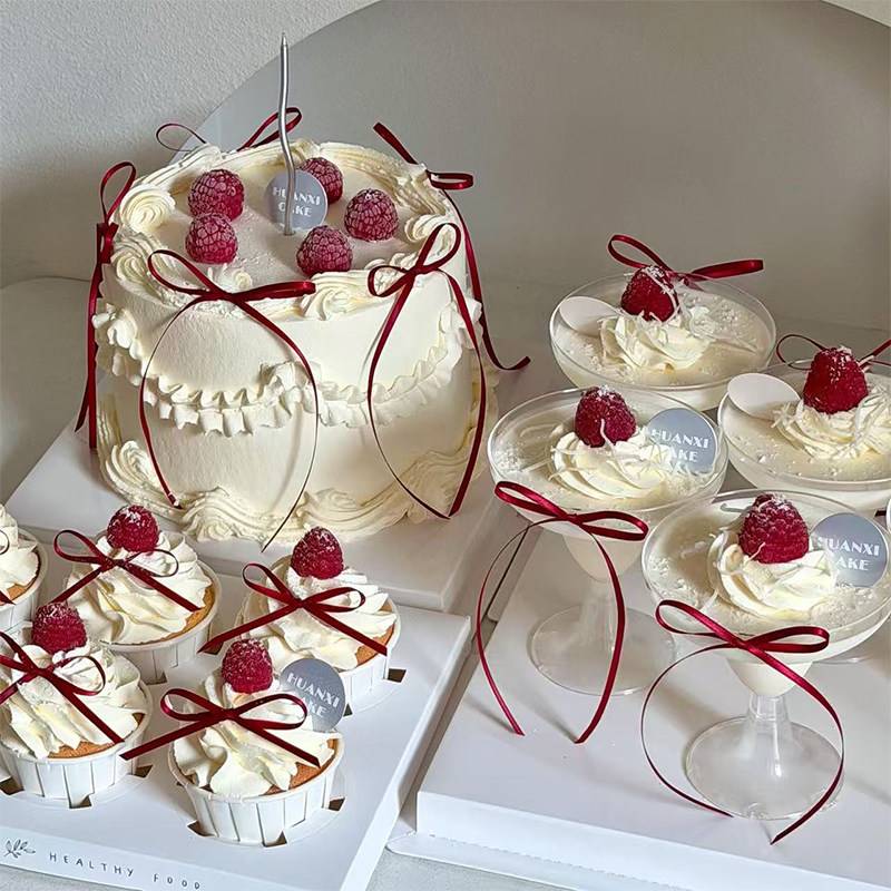 淘宝遇见你烘焙,网红高级感订婚结婚甜品台蛋糕装饰0.3cm丝带蝴蝶结酒杯甜品插件