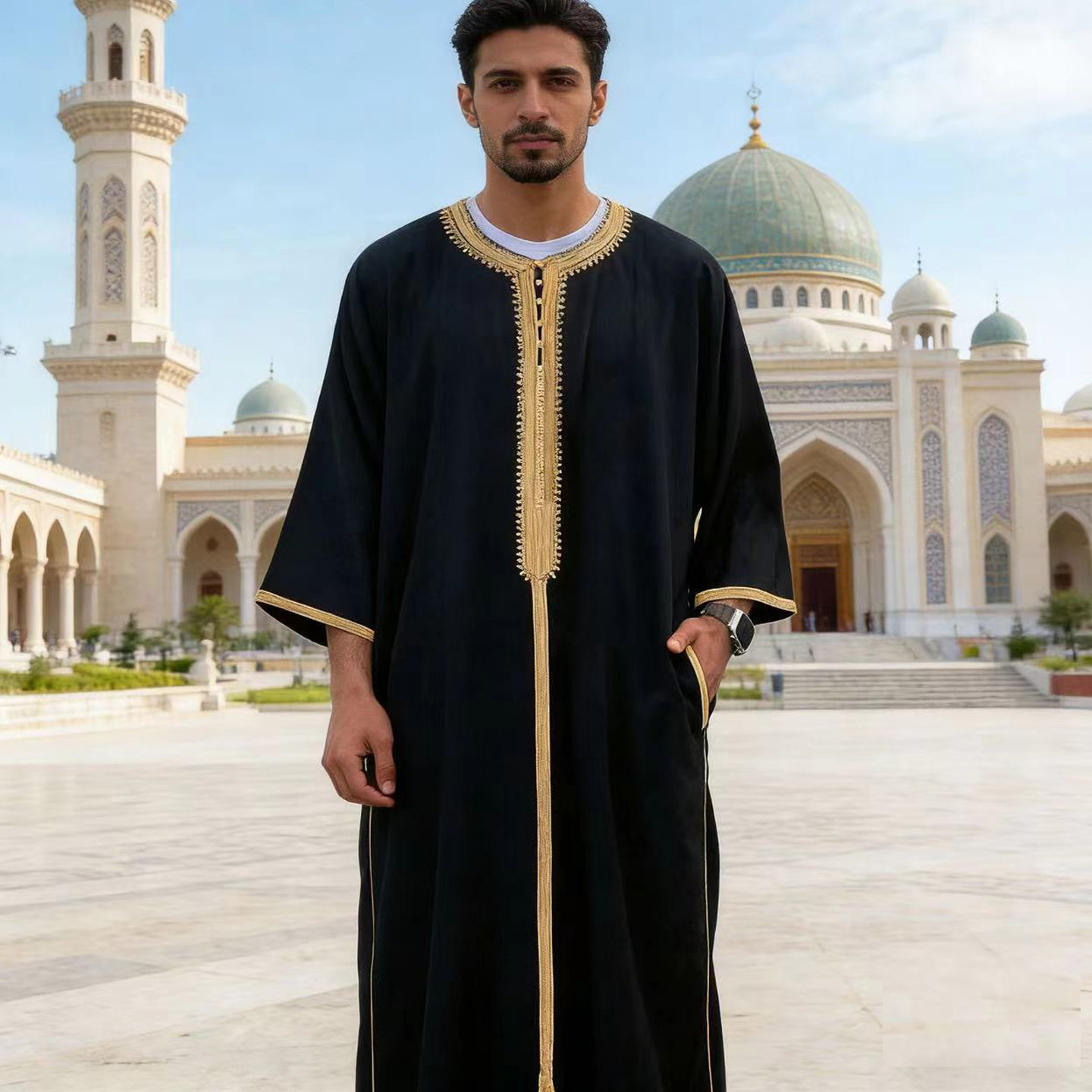 淘宝Dashiki Robe Suits,摩洛哥绳绣男士长袍民族服饰