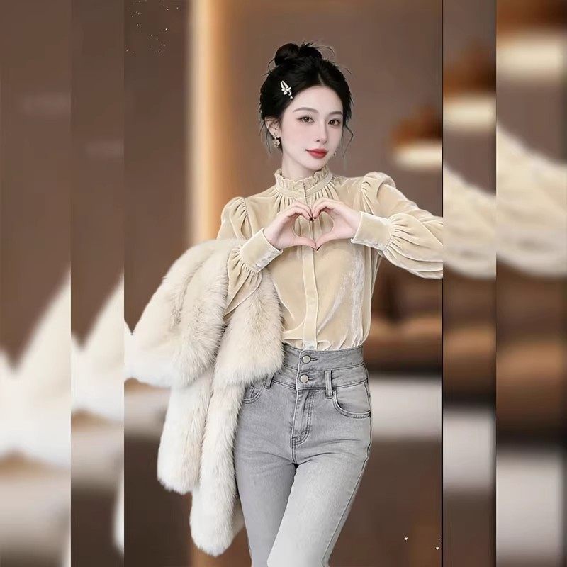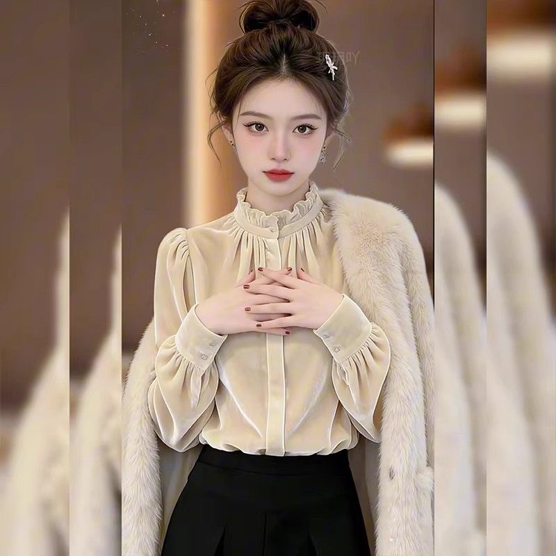 天猫妮彩流行旗舰店,法式木耳边立领显瘦衬衫女新款,潮流精品,品质保证