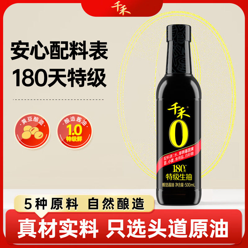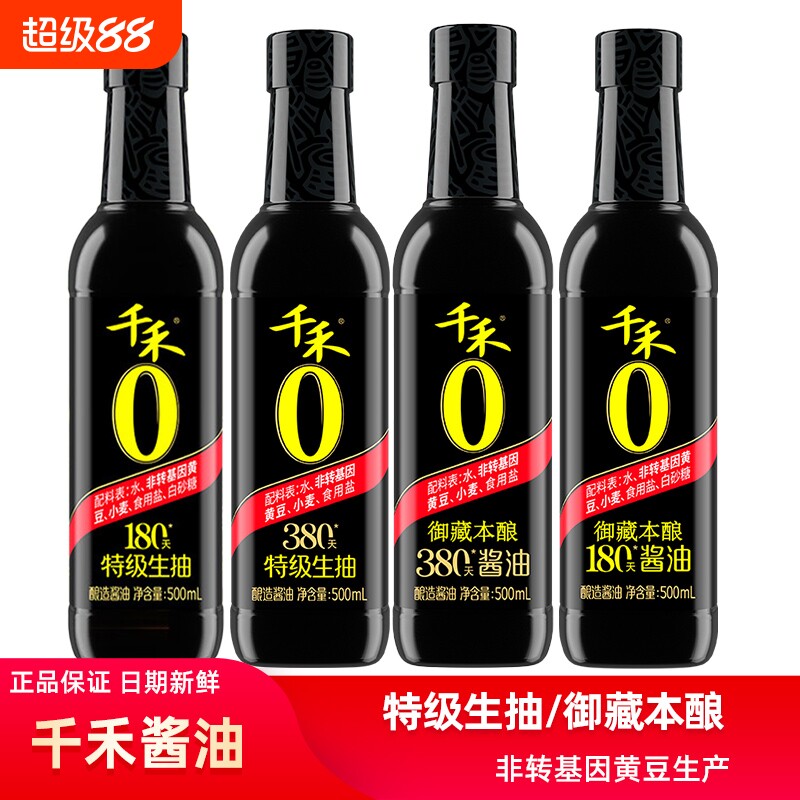 天猫淘工厂美妆直营,千禾酱油特级生抽180天380天500ml头道原香御藏本酿纯酿黄豆