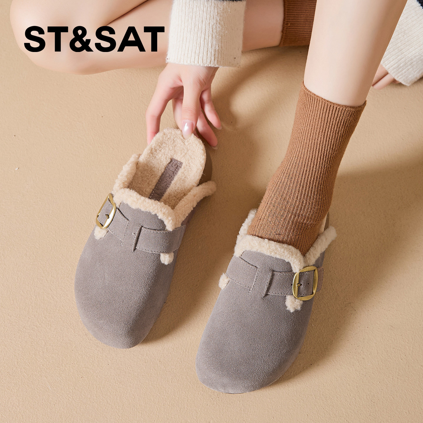 星期六厚底勃肯鞋女鞋新款冬季复古百搭懒人大头鞋女士保暖毛毛鞋券后价¥309星期六官方旗舰店 3 周前