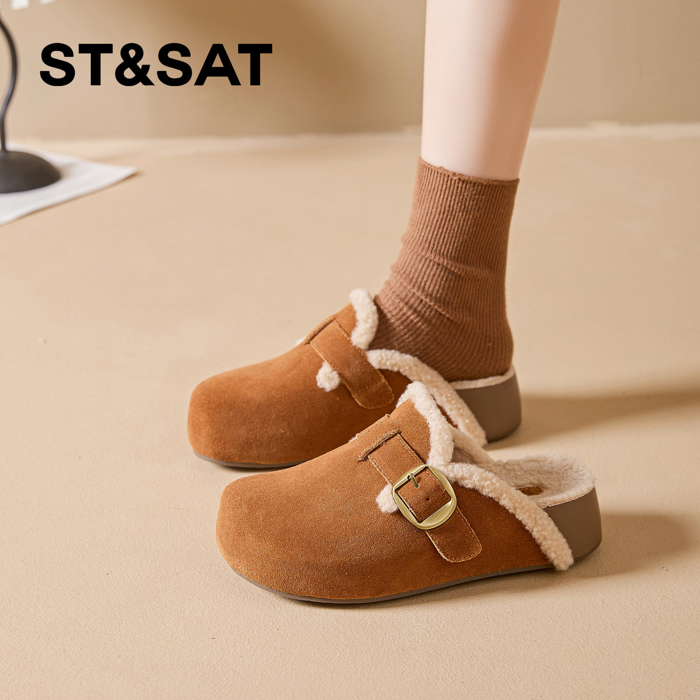 天猫星期六官方旗舰店,星期六真皮加绒厚底勃肯鞋女外穿,官方旗舰店正品保障,收藏加购,优先发货!