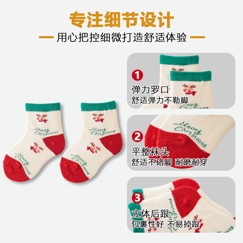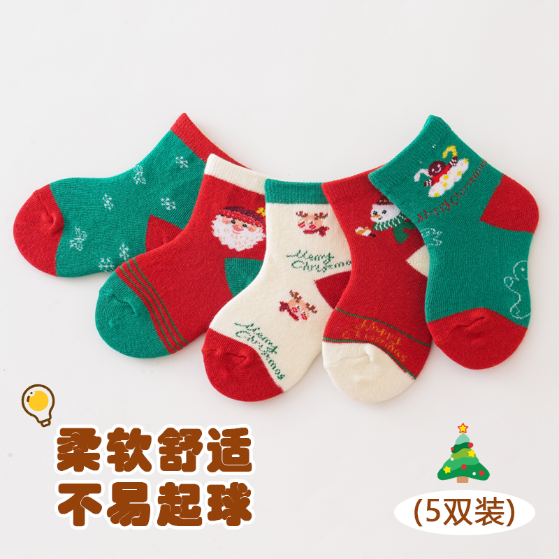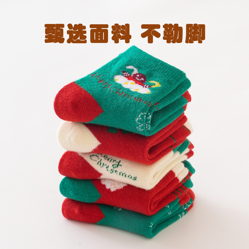 天猫萌森鸭旗舰店,5双装圣诞袜儿童中筒袜