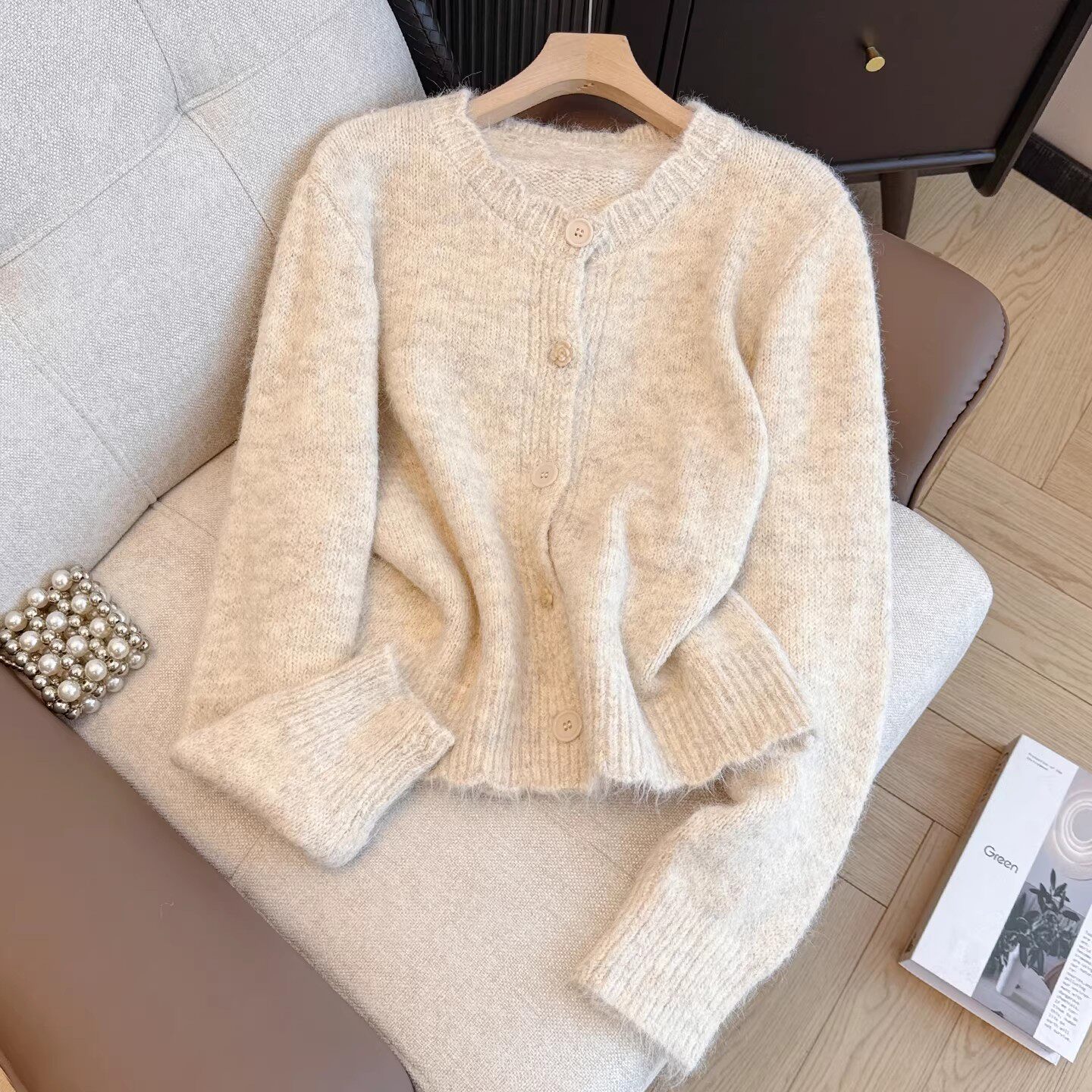 天猫宋族旗舰店,小香风杏色软糯毛衣针织开衫女
