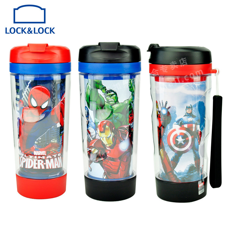 天猫乐扣乐扣千合专卖店,乐扣双层漫威提绳便携运动儿童水杯,双层隔热设计 带过滤网 时尚卡通