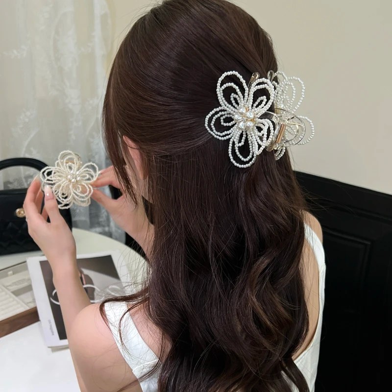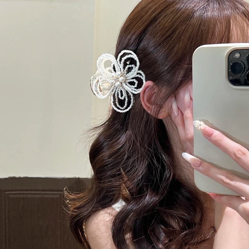 淘宝绮梦云间企业店,韩系精致手工珍珠花朵抓夹氛围感
