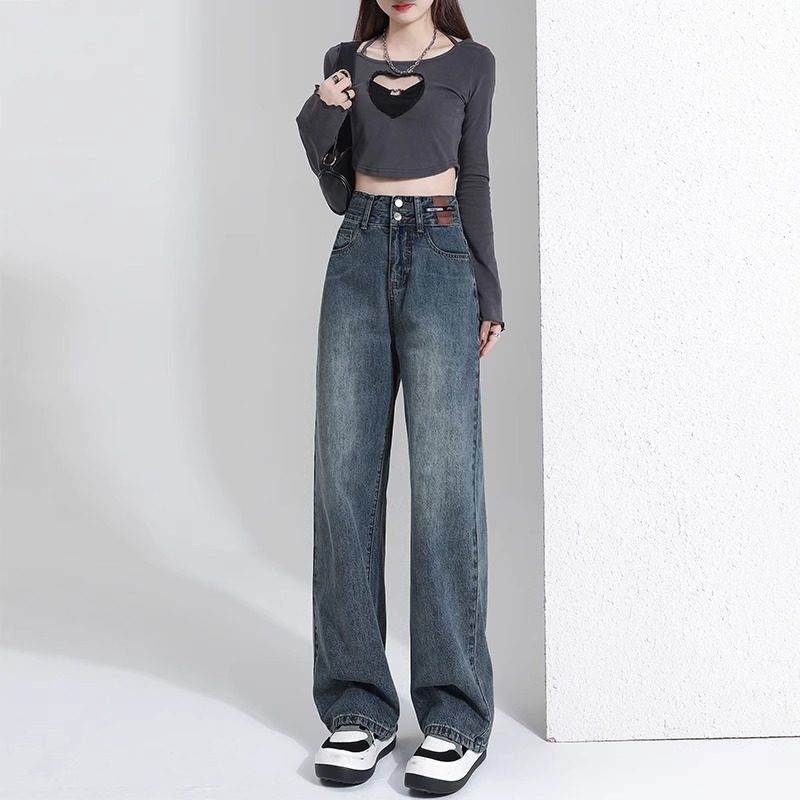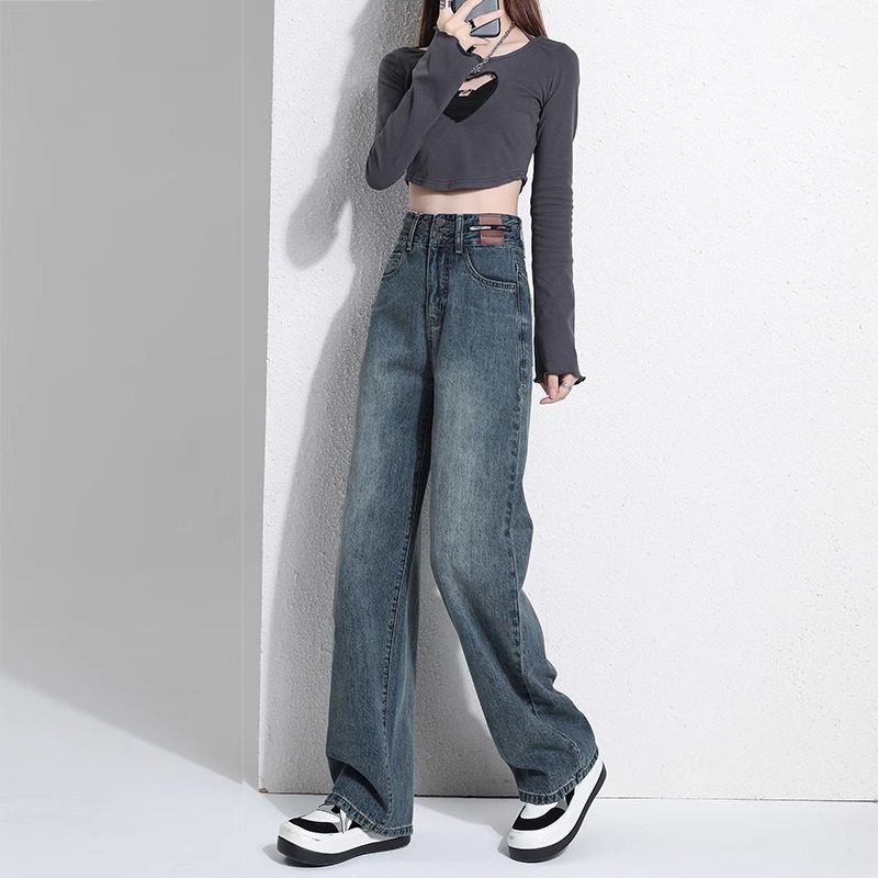 2025年春秋窄版阔腿牛仔裤女大码胖mm直筒宽松高腰显瘦直筒拖地裤券后价¥44.9天天特卖食品直营 5 分前