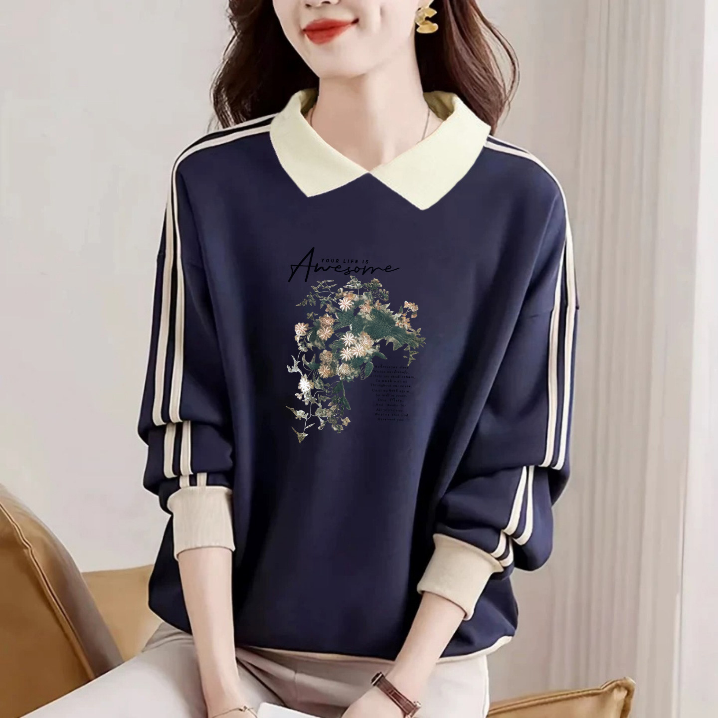 淘宝爱尚大码服饰,纯棉卫衣女翻领打底衫POLO领上衣