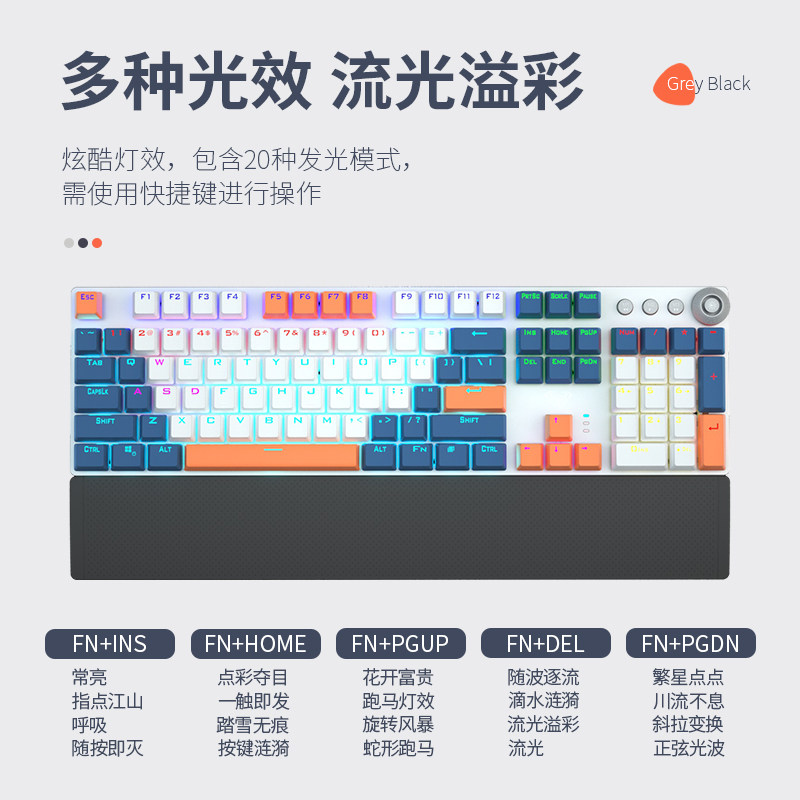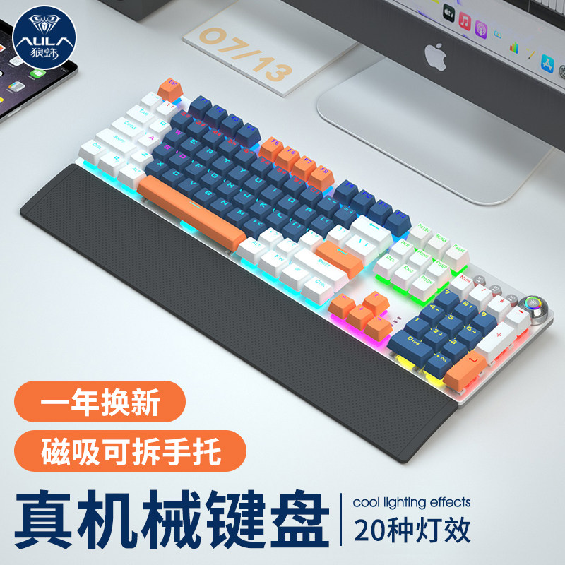 天猫贝瑞斯数码专营店,狼蛛f2088机械青黑茶轴有线笔记本,20种灯效 金属旋钮一键双模 时尚拼色