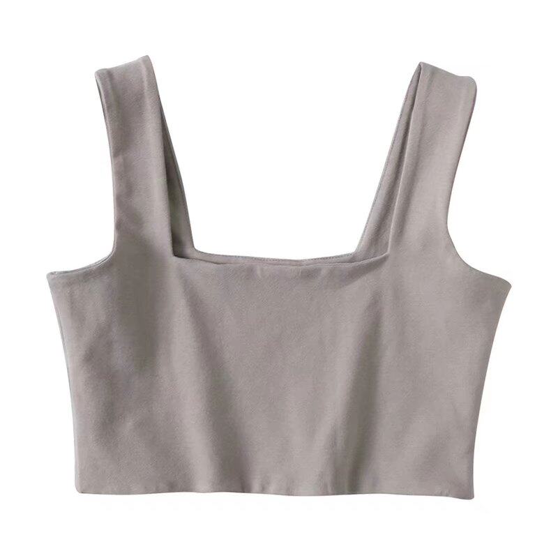 淘宝私的衣橱,美式街拍复古纯色方领双层背心内搭短款露脐修身显瘦简约性感上衣