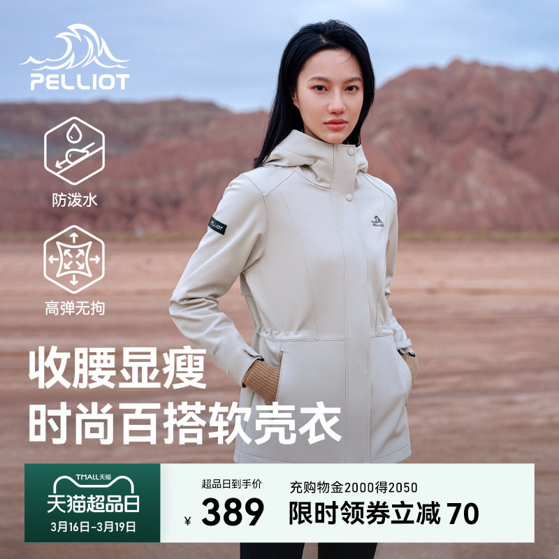 天猫伯希和官方旗舰店,伯希和户外软壳衣春秋运动外套女,防风防泼水 防刮耐磨 可收腰可直筒设计