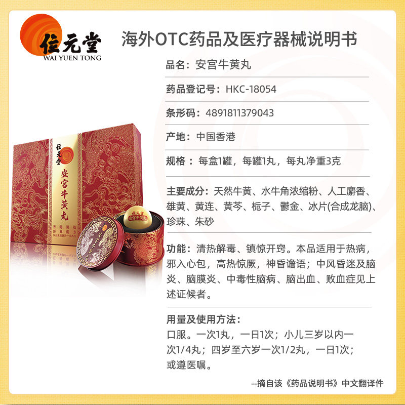 天猫位元堂海外旗舰店,位元堂安宫牛黄丸天然牛黄预防中风清热解毒镇惊安宫丸进口朝鲜