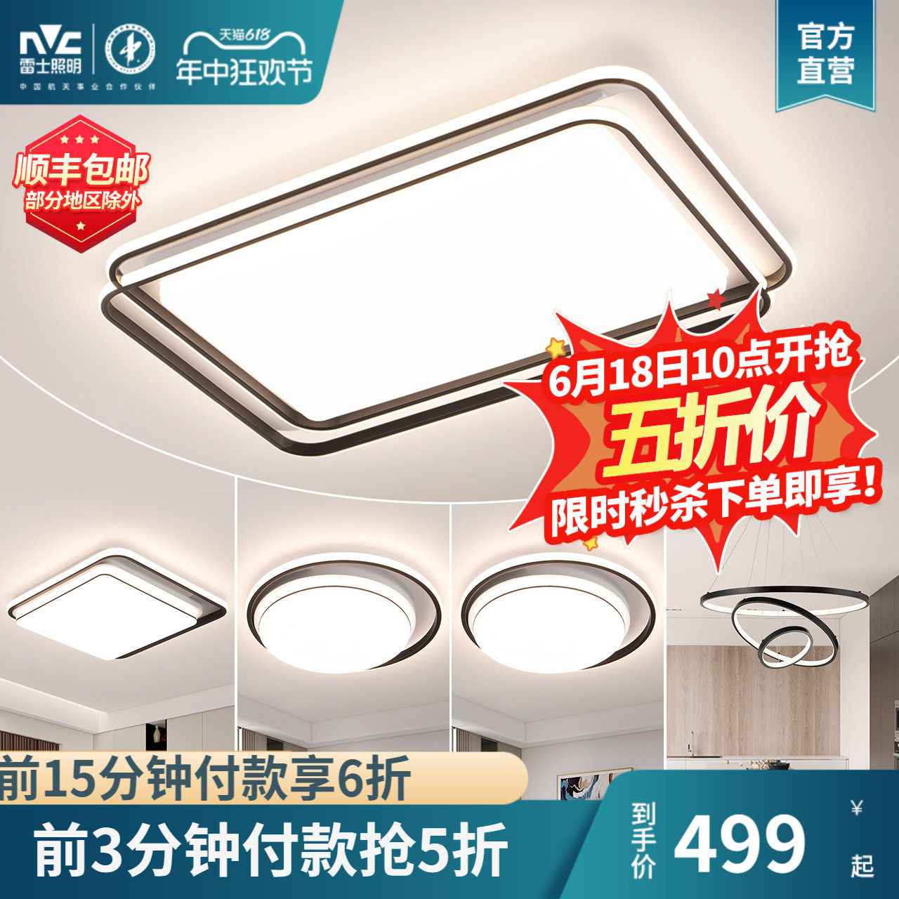 天猫nvc雷士奥空专卖店,雷士照明北欧简约客厅吸顶灯,智能款加大款可选