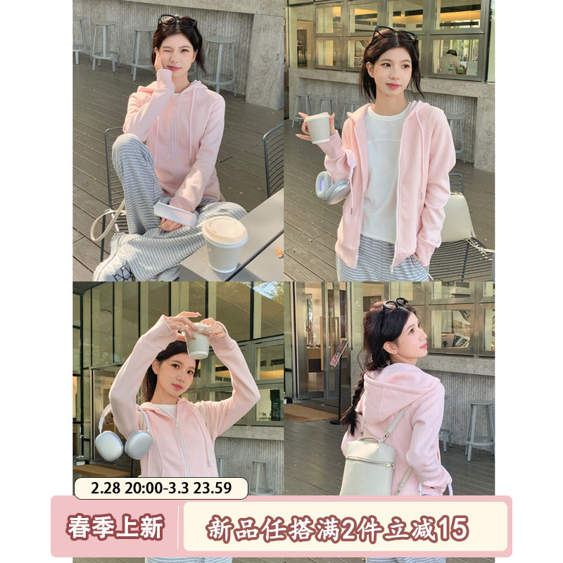 淘宝芝士兔 CheeseBunny,宽松连帽卫衣女休闲拉链外套