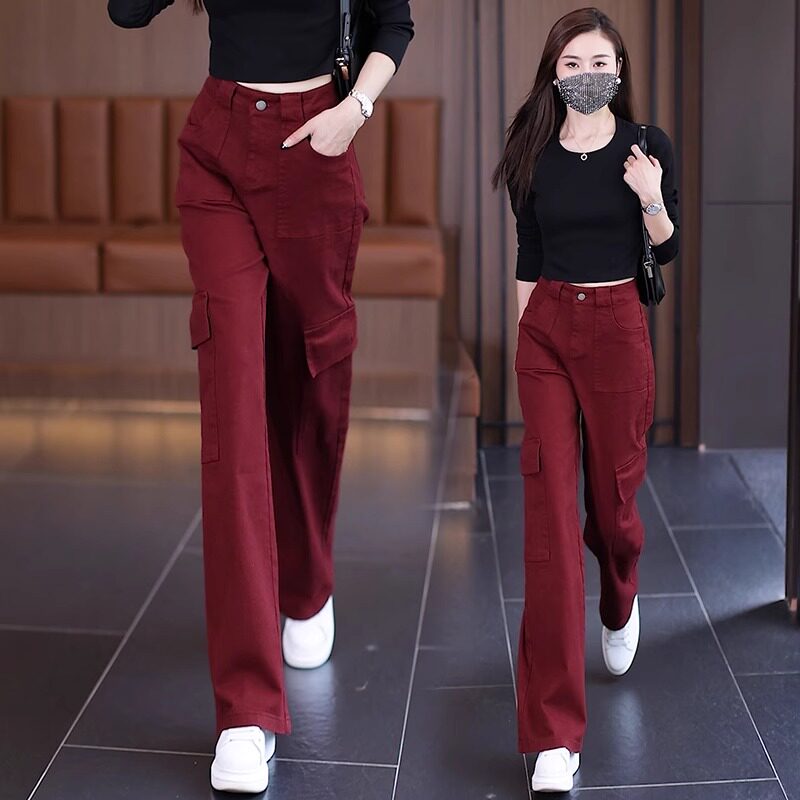 天猫赢米兔旗舰店,高腰美式多口袋窄版直筒休闲裤