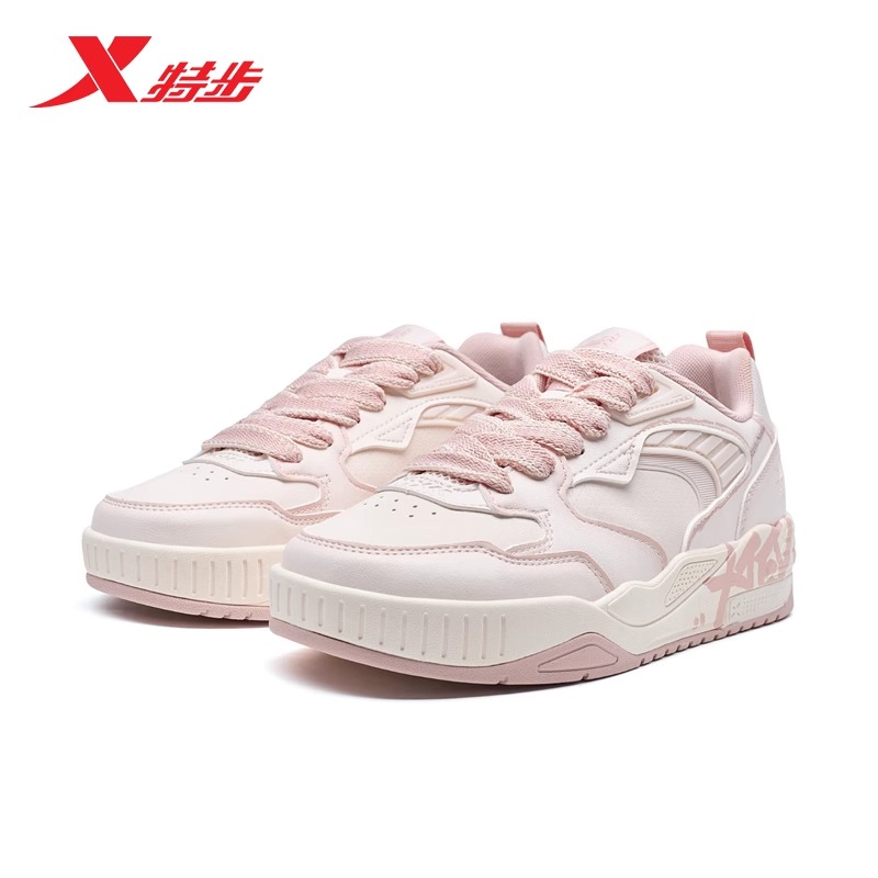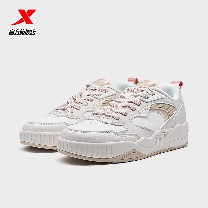 淘宝特步品牌折扣店,特步板鞋皮面经典撞色低帮女