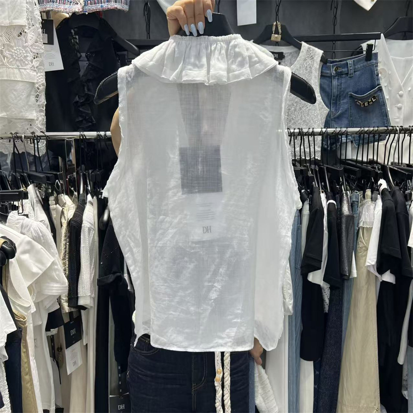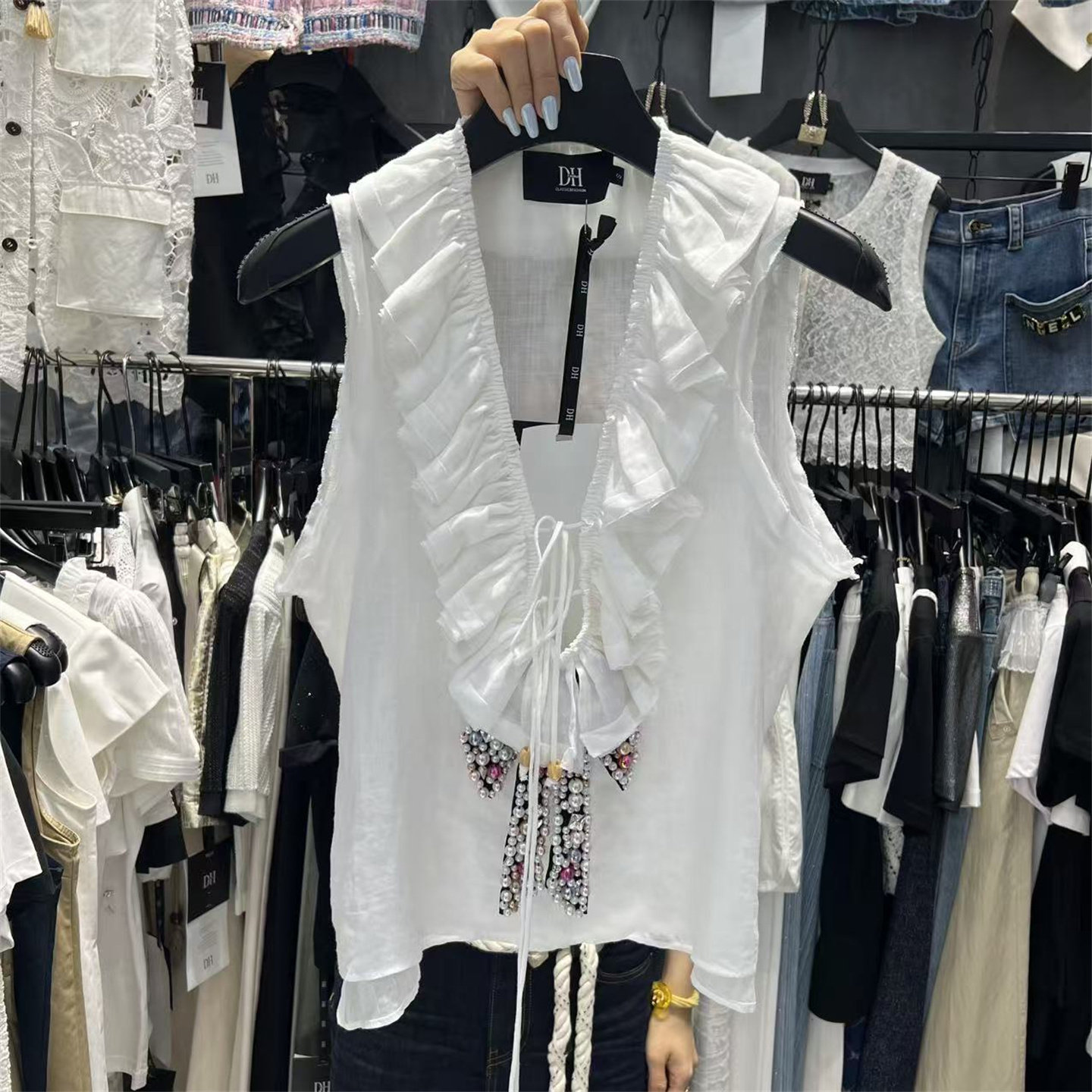 淘宝瓜瓜家 十三行女装批发,甜美气质木耳边百搭无袖背心上衣