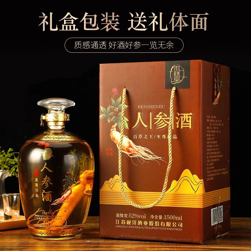 天猫李府井酒类旗舰店,人参酒1500ml坛装 浓香型风味礼盒装52度
