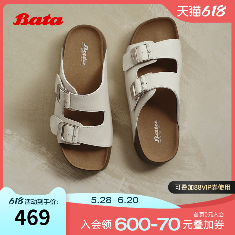 天猫bata官方旗舰店,Bata勃肯拖鞋女2025夏商场新款英伦风牛皮外穿厚底凉拖鞋25300BT5,英伦风牛皮外穿厚底凉拖鞋