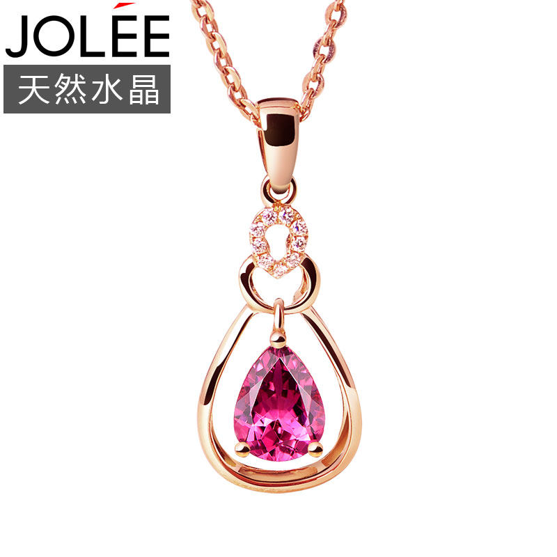 天猫jolee旗舰店,jolee18k金红碧玺韩版新款彩色,玫瑰金色银链 配送检测证书 专柜包装