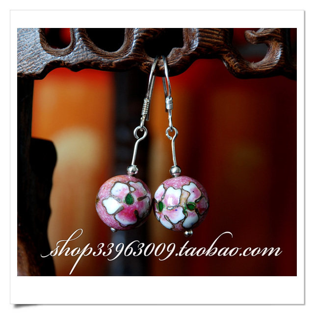 淘宝华韵典藏景泰蓝馆,北京特色手工艺品景泰蓝老银蓝耳坠/耳环/耳钉 925银钩 外事礼品