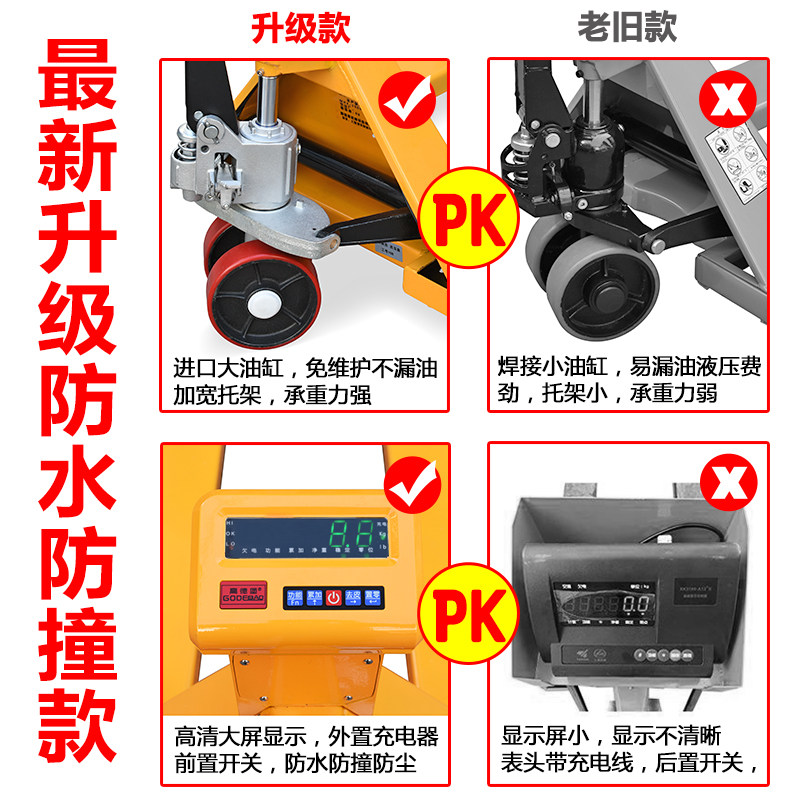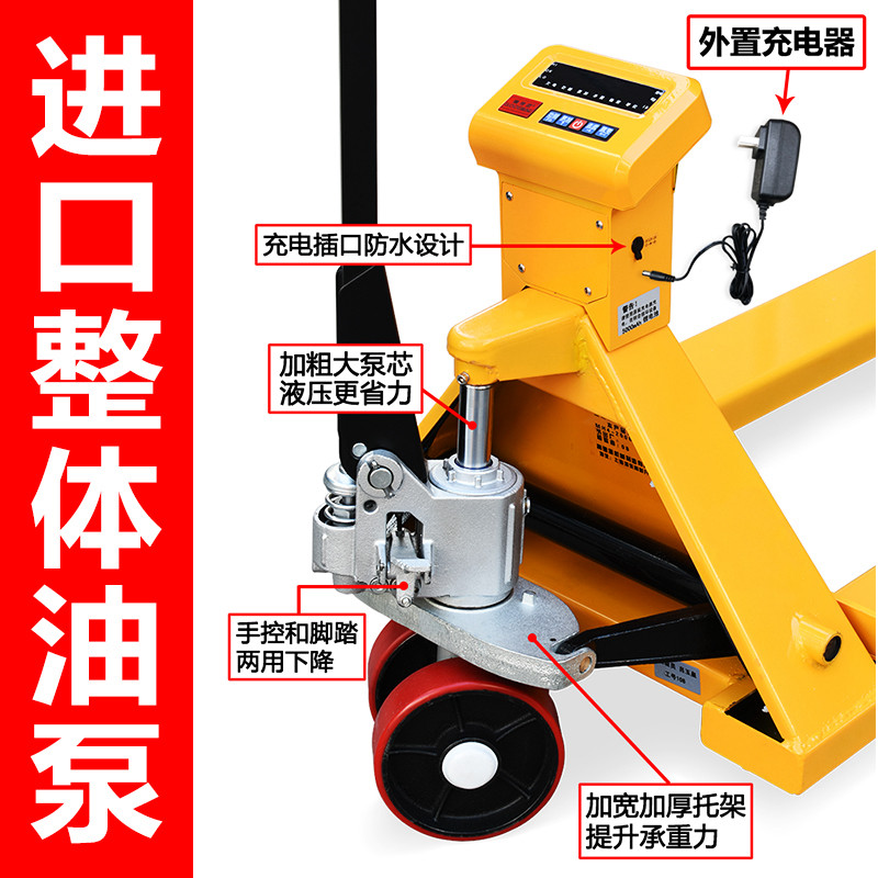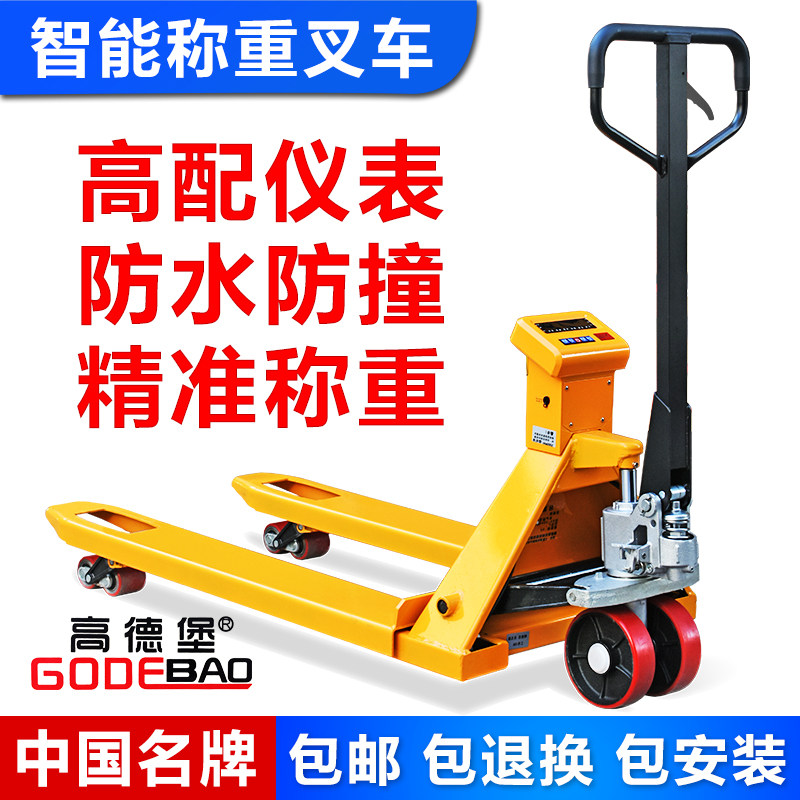 天猫百方财五金专营店,高德堡电子叉车秤称重液压车叉车,精准称重,防水防撞,一体油缸,锰钢车架
