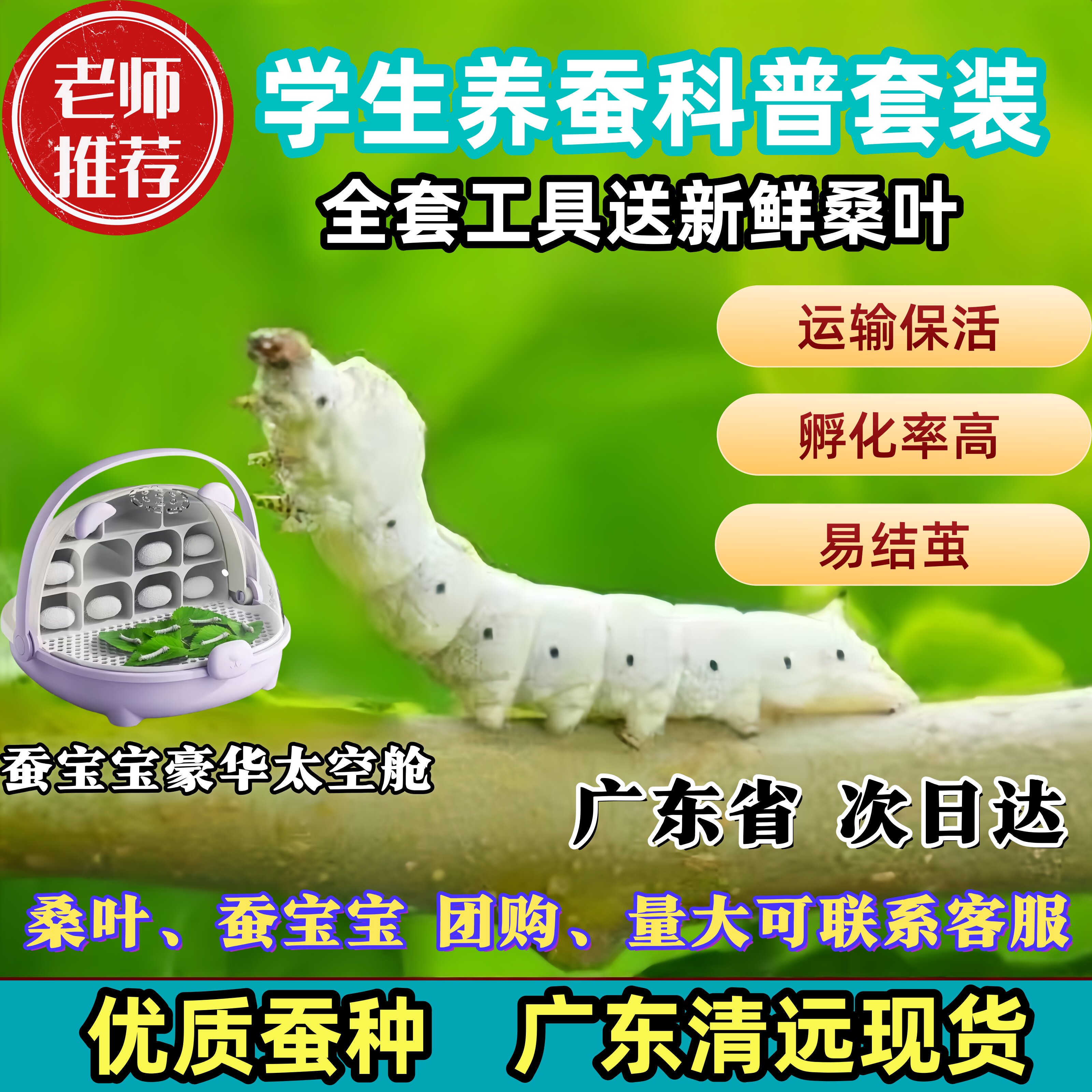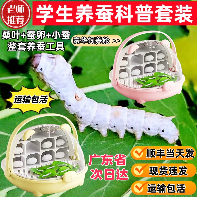 蚕宝宝学生养蚕套装活体幼虫蚕卵春蚕彩丝蚕白色养蚕套装太空舱