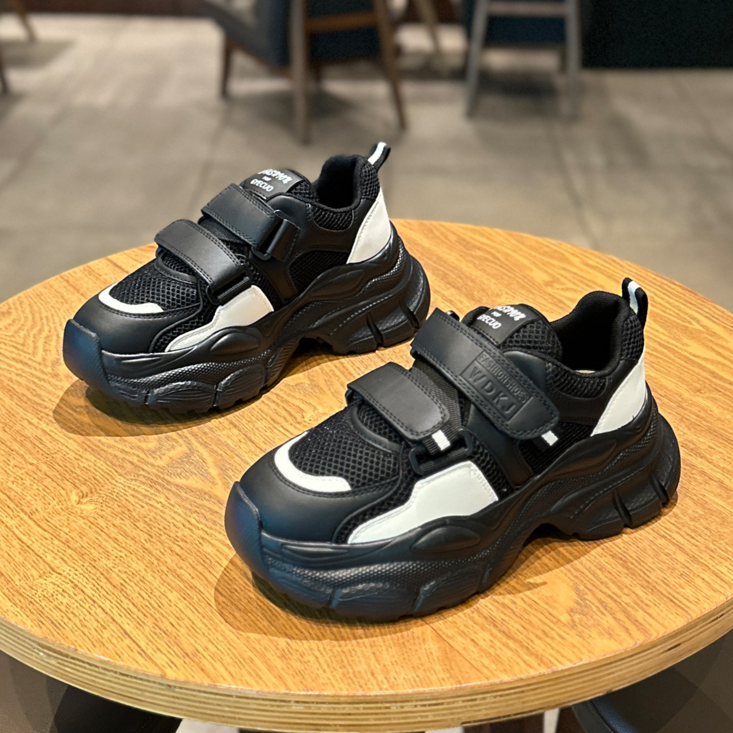 淘宝Miss 爱鞋控,欧洲站真皮老爹鞋女2023新款拼色爆款魔术贴女鞋厚底运动休闲女鞋