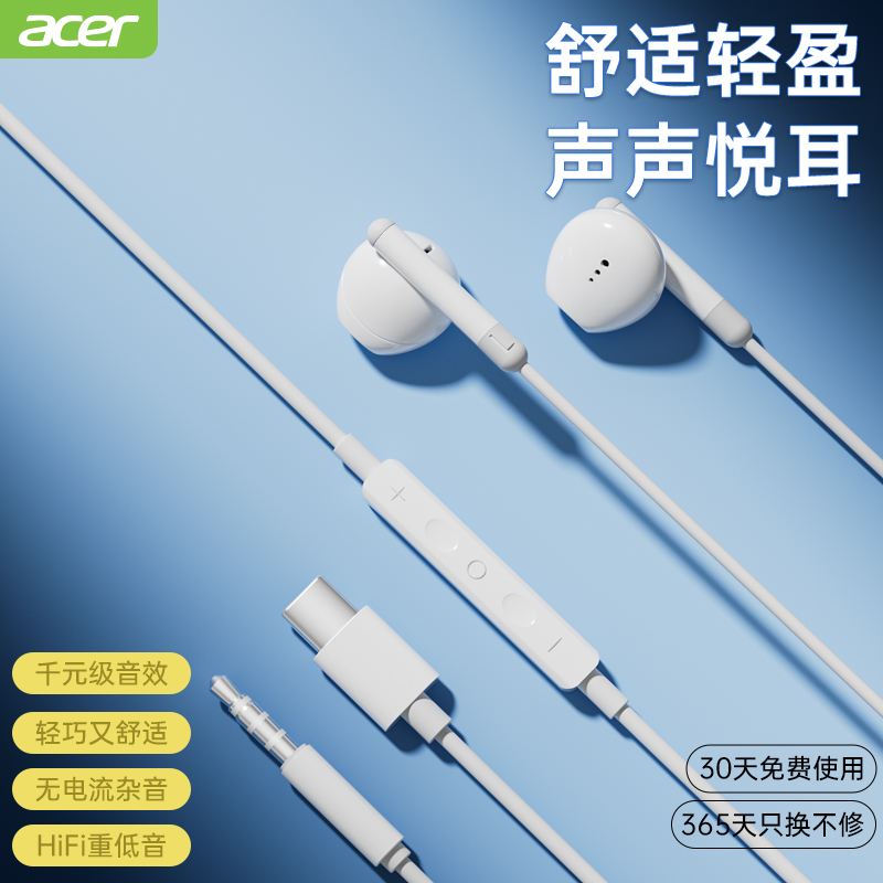 天猫Acer宏碁议博专卖店,Acer/宏碁有线耳机Typec/3.5mm,Dolphin仿生无感贴合科技 久戴不痛更舒适