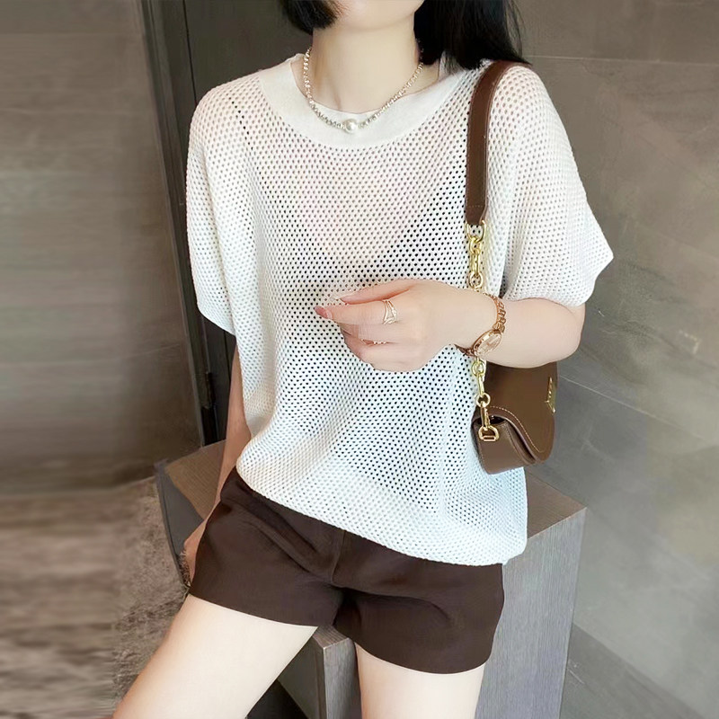 淘宝D小姐精选女装只做高品质,欧货2023新款镂空拼接性感外搭显瘦薄款针织衫罩衫毛衣t恤上衣女
