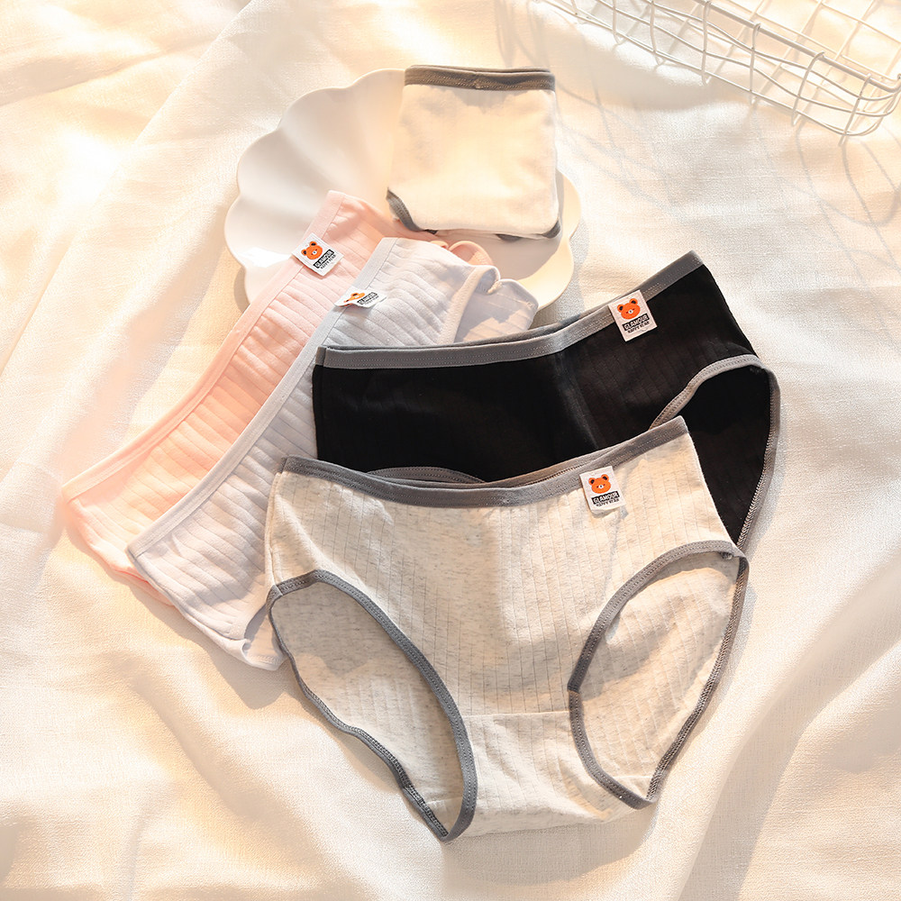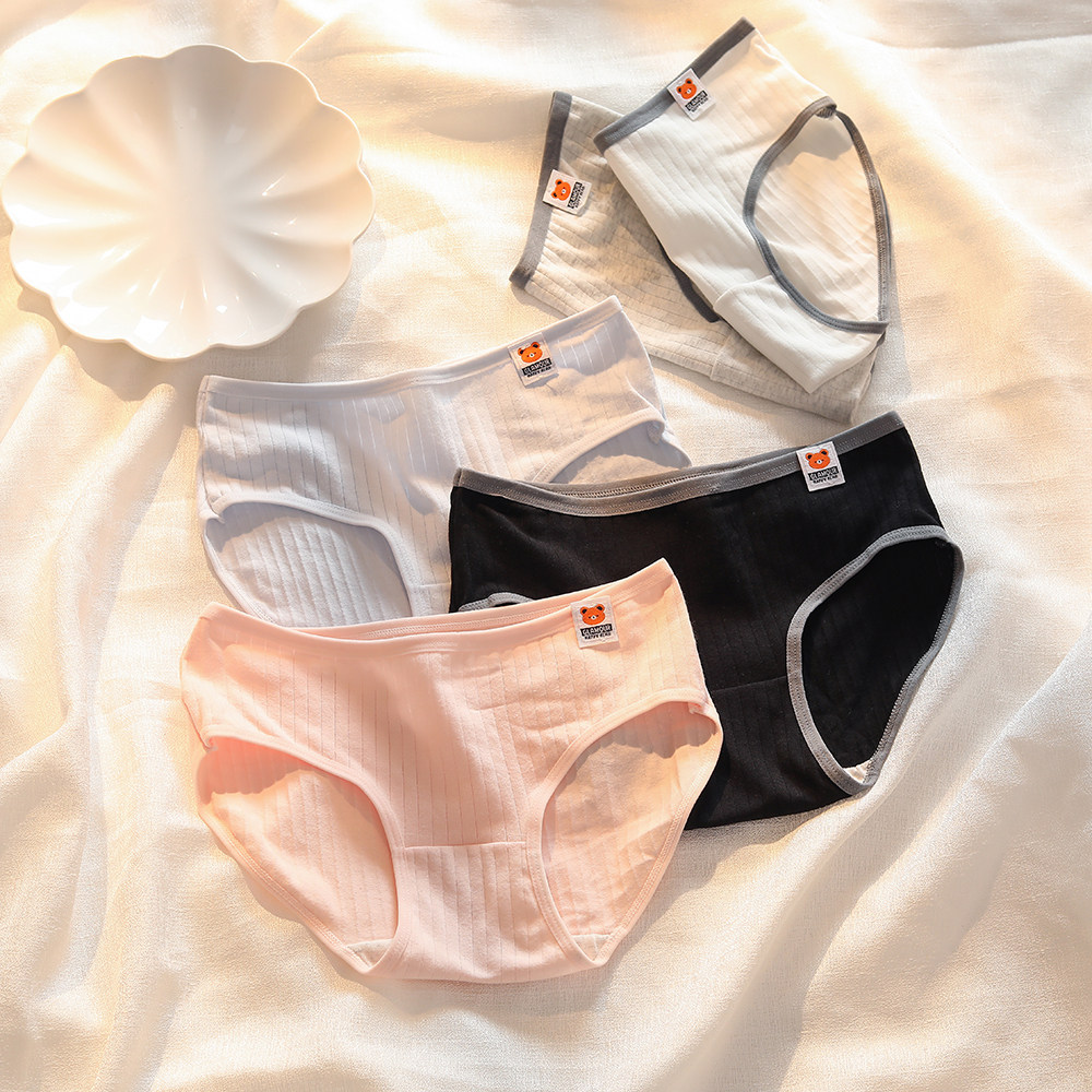 淘宝Mr袜子先森,可爱布标卡通小熊少女内裤简约中腰包臀纯棉裆透气学生三角裤