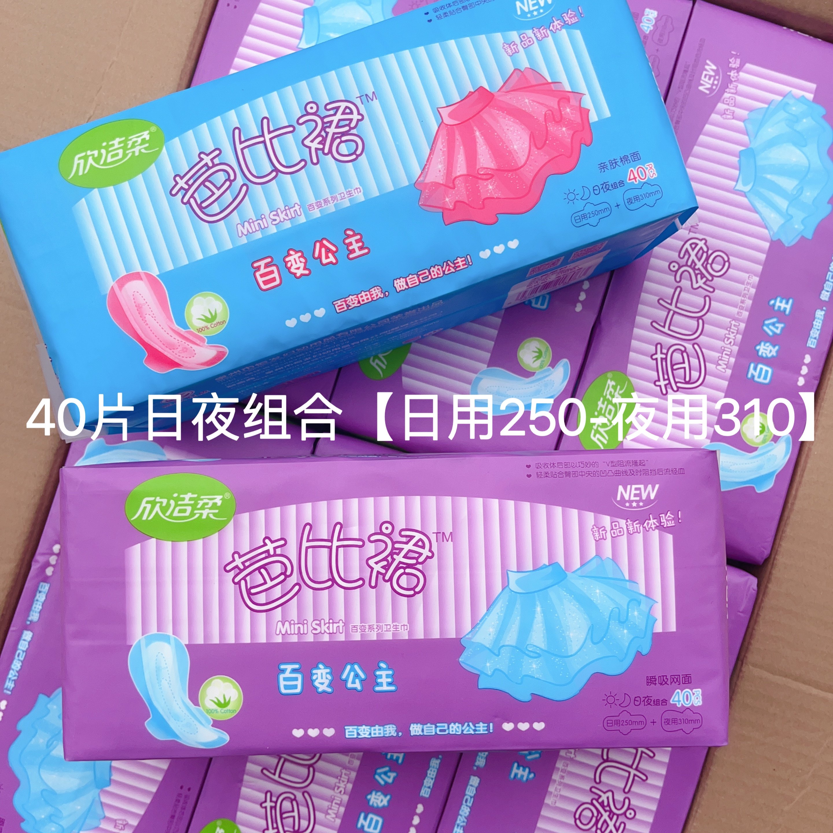 淘宝橘子生活日用品馆,芭比裙卫生巾40片日夜组合棉柔干爽网面超薄透气公主裙姨妈巾少女