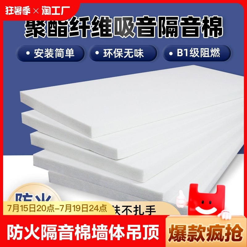 天猫天天特卖工厂店,防火隔音棉墙体吊顶填充室内酒吧影音室消音棉环保聚酯纤维吸音棉,大厂直供 买退无忧