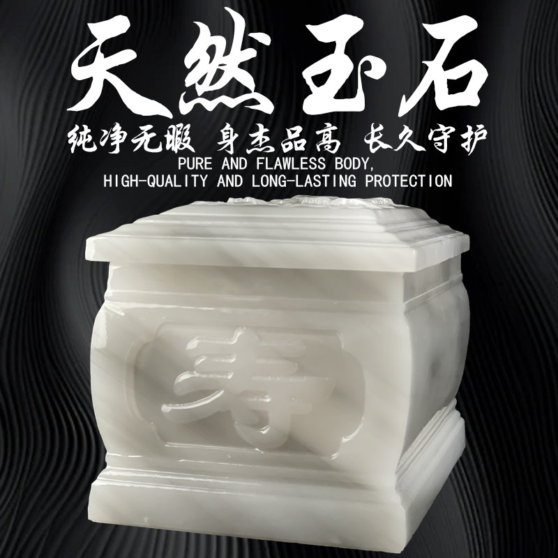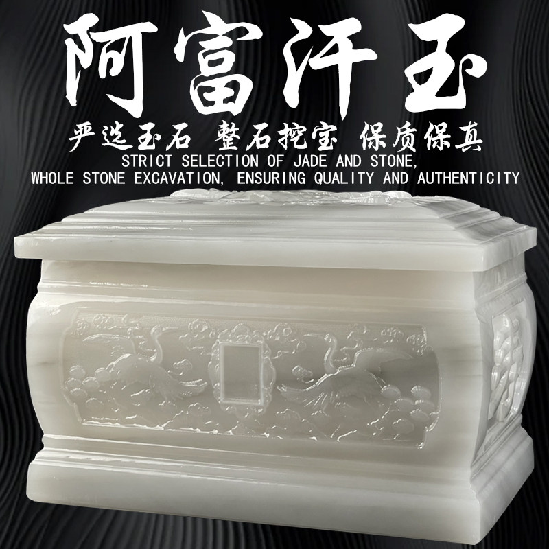 高档天然玉石骨灰盒阿富汗玉骨灰盒寿盒汉白玉防潮盒殡葬用品墓地