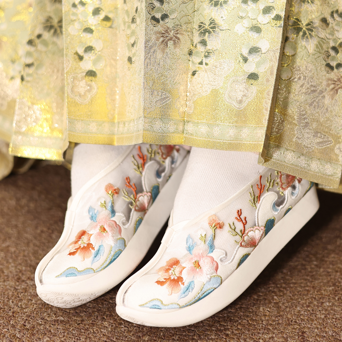 淘宝江南朱记原创汉服鞋,江南朱记原创【画春光】汉服鞋子女夏网纱内增高登云履绣花凉鞋平
