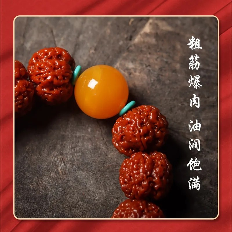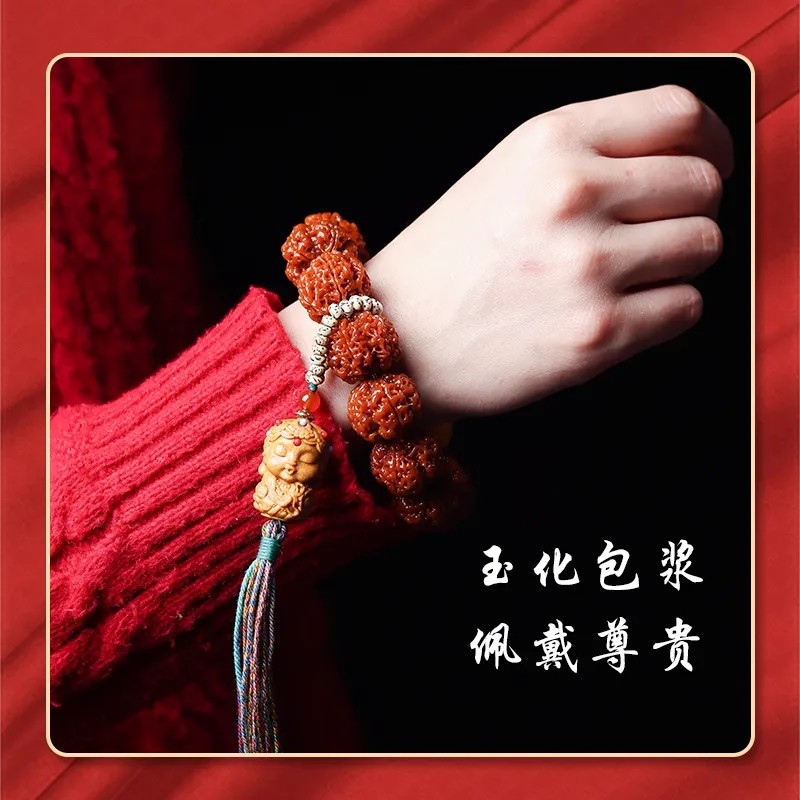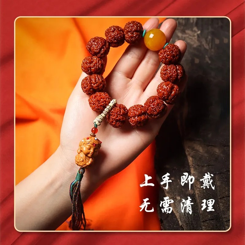天猫淘工厂美妆直营,五瓣古龙梅花双龙粗筋大手串机刷玉化包浆佛珠文玩男女款手链单圈,潮流精品,品质保证