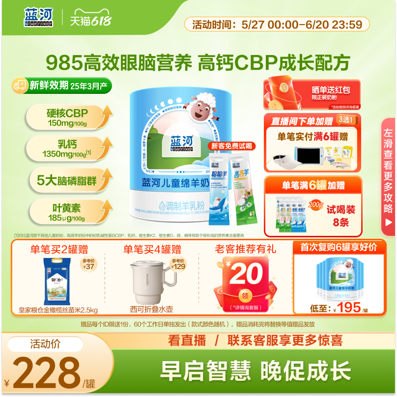 天猫blueriver蓝河母婴旗舰店,新品蓝河儿童绵羊奶粉600g单罐早晚装高钙叶黄素3岁学生羊奶 新鲜
