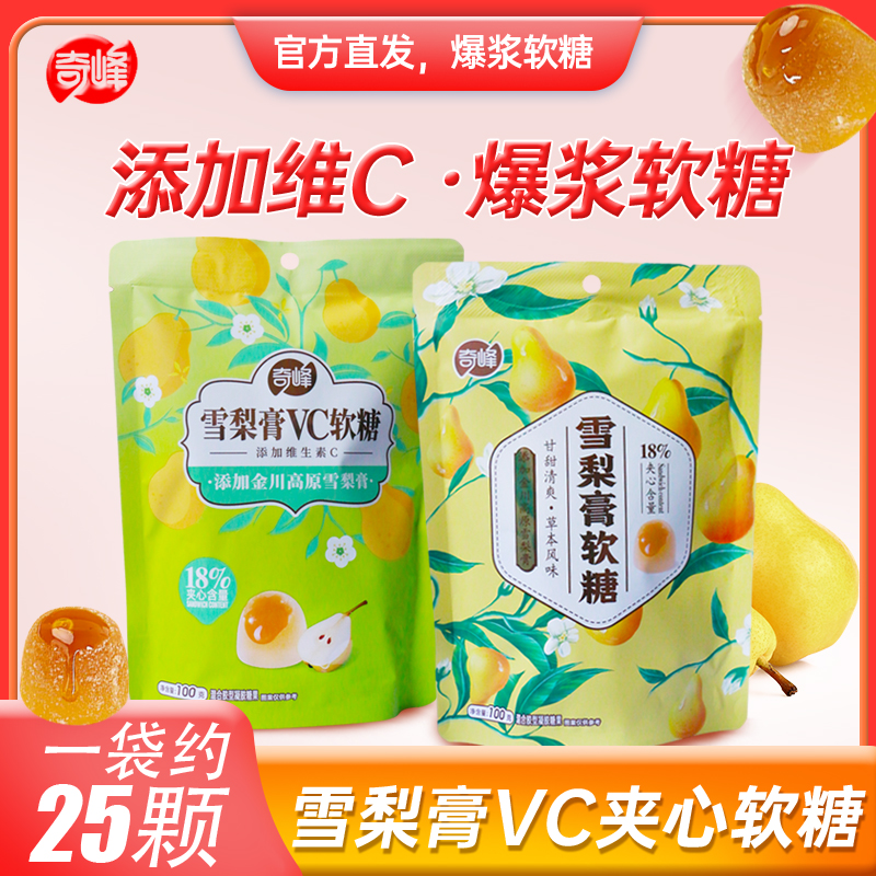 天猫奇峰旗舰店,奇峰雪梨膏夹心维C果汁儿童软糖休闲零食金川高原草本风味100gSX