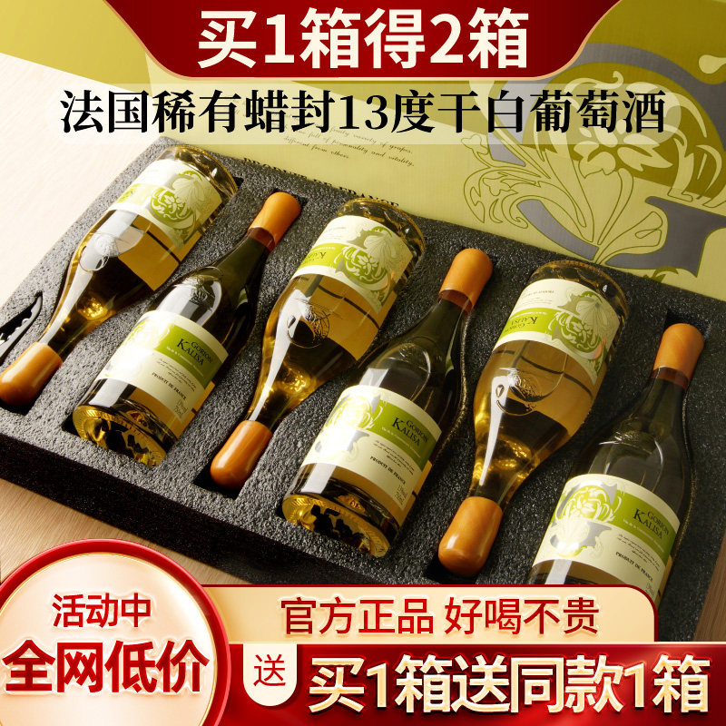 天猫炫品酒类专营店,法国进口蜡封干白葡萄酒2箱,蜡封款 13度干白葡萄酒 买一箱送一箱